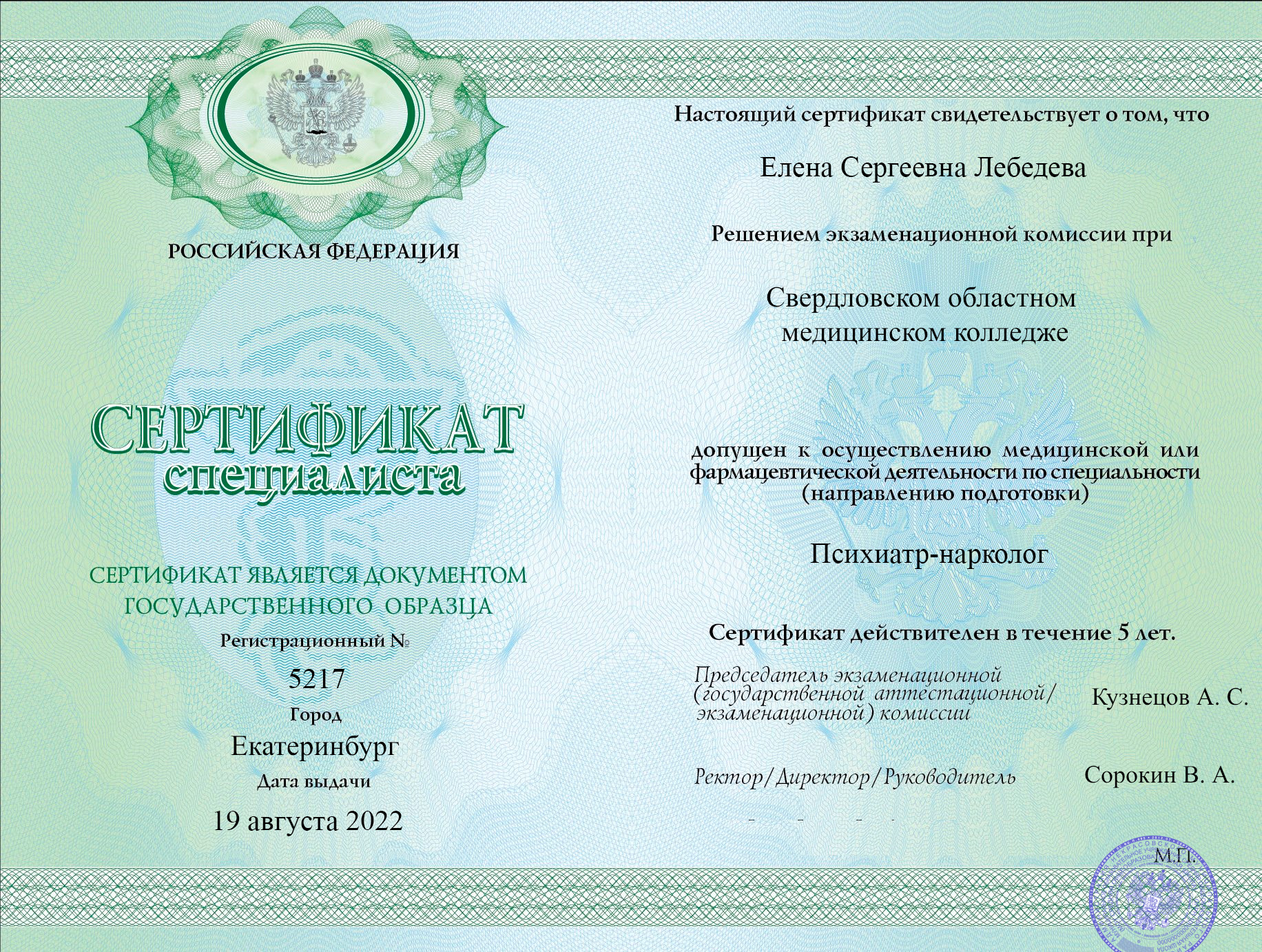 Елена Сергеевна Лебедева врач нарколог клиники доктора Стукаловой в Дербенте